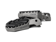 Meticulously cast in the company’s in-house foundry using lightweight Grade 5 titanium, a material with high strength and excellent corrosion resistance, these one-piece footpegs were designed with the demanding engineering objectives of high mechanical strength and extremely stable construction, ensuring stability, grip, and comfort for the rider on- and off-road.