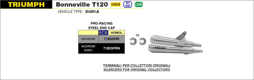 Description 71853PRI Nichrom Pro-Racing silencers (right & left) Features Values Silencer material stainless steel Rear endcap m...