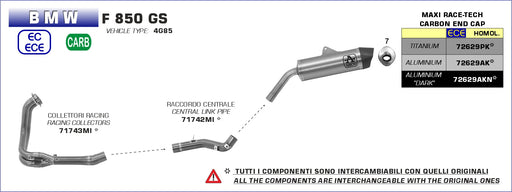 BMW R 1200 GS/GSA '13-later HOMOLOGATED TITANIUM MAXI RACE-TECH SILENCER WITH CARBON END CAP FOR ORIGINAL AND ARROW COLLECTORS MAX GAIN Power +3...