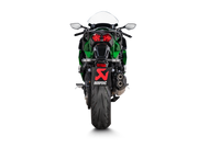 Constructed from race-inspired materials and consisting of a high-grade lightweight titanium muffler outer sleeve, a stylish handmade carbon-fibre heat shield, and an end cap with twin exhaust ports, this product is completed with a stainless-steel link pipe. Featuring a catalytic converter to comply with Euro 5 regulations, this Slip-On Line (Titanium) weighs in at 2.2 kg lighter than the standard stock system, for a weight savings of 28.9%. It is fully compatible with the Kawasaki OEM side cases. A simple plug and play installation, with no need for remapping, the system provides a perfect throttle response, with power increased by 1.4 kW (1.9 hp) at 10,100 rpm and a torque elevation of 1.8 Nm at 5,500 rpm when tested on the in-house dyno against a Ninja H2 SX with a standard stock exhaust. All of this is allied with a deep, distinctive Akrapovič sound.