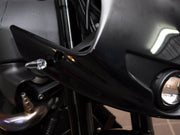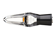 The mo.blaze ice appears very neutral and unobtrusive thanks to the transparent glass body, which is made of scratch-resistant plastic. The small aluminum base is made of billet aluminum and is available in a black anodized or highly polished finish. The turn signal fits all styles, paint finishes and a wide variety of motorcycles.