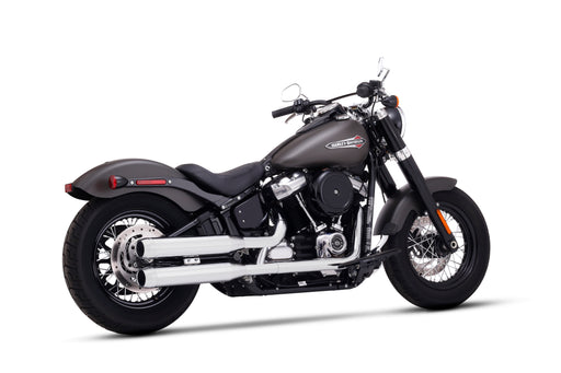 2007-Later Softail Kick Backs 2-into-2 Chrome with Black End Caps Product Description: The Softail Kick Backs is pure performance in a pipe that...