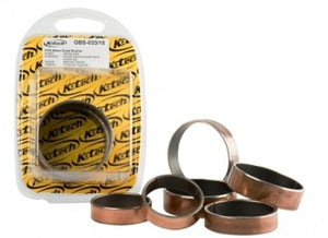 K-Tech front fork guide bushes are a direct replacement and manufactured to the exact standards of the original equipment parts. They are manufactured from hardened steel and coated with copper for added protection. The contact surfaces are a PTFE material designed to give low friction on the moving parts. All guide bushes are supplied in pairs and available for most fitments.
